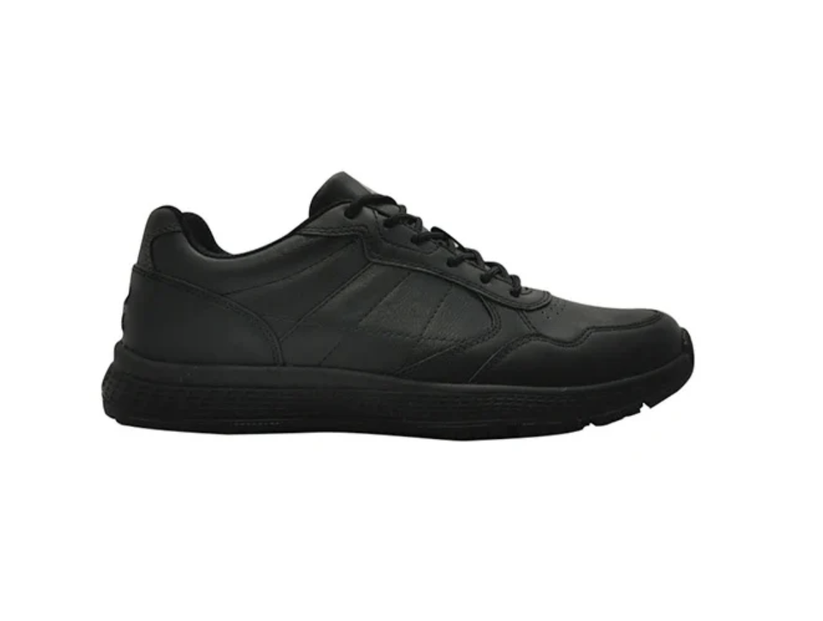 Lightweight and anti-slip, this shoe is perfect for the person spending all day on their feet and wanting to reduce their hazard slipping risk. All black appearance makes it a great match for hospitality workers or school students. Premium Comfort thick PU Footbed, lightweight PU outsole. Animal friendly Synthetic upper.